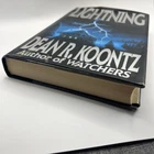 This vintage horror novel, "Lightning" by Dean Koontz, is a rare find for any book collector. Published in 1988 by Penguin Publishing Group, this hardcover book with a dust jacket features 352 pages of gripping fiction narrative. The book measures 6.3 inches in length, 9.4 inches in width, and 1.3 inches in height, with a weight of 25 ounces. The book is in its original English language and is intended for adult readers. It is a first edition book and is classified as vintage. The book is perfect for those who enjoy general horror themes and are looking for a thrilling read.