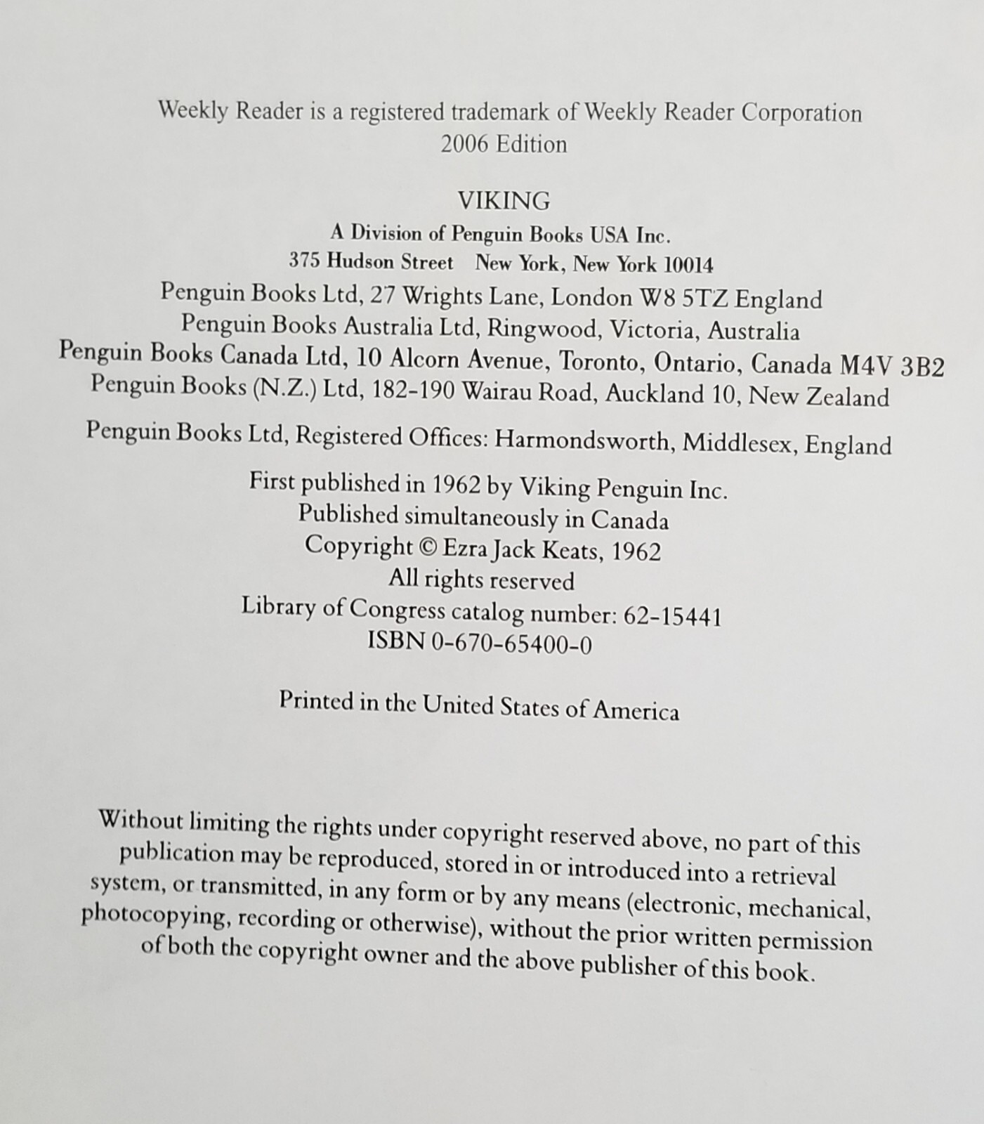 You are bidding on a Like New, full color illustrated HB storybook / picture book for kids, exactly as shown! "The Snowy Day" by Ezra Jack Keats Lg, hardback; Lg, easy to read type; full color illustrations with story text throughout; Caldecott Medal Award-winning book This sweet, classic book would make a great Holiday gift for your own child or grandchild! :) Thanks so much for stopping by to check out all our auctions! Happy Holidays & Happy Bidding! :)