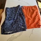 Elevate your beach look with these stylish Tommy Bahama Relax Swim Trunks. These shorts come in a solid blue color with a tropical floral pattern and are made of a blended fabric of polyester and spandex. The mesh lining provides a breathable and comfortable fit, while the elastic waist and drawstring ensure a perfect fit for any activity, whether it be surfing or just lounging by the pool. These trunks also feature a built-in brief, back pocket, and additional pockets to keep all your essentials safe. Perfect for a beach or pool day, these Tommy Bahama shorts will make you feel stylish and comfortable all day long. Excellent, preowned condition. See photos for measurements.