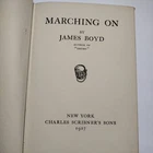 These 2 books are both signed and personalized by James Boyd. Both are in very good condition, all pages intact and unmarked, covers are sturdy. #1: "Marching On", 1st edition, published by Charles Scribner's Sons, New York 1927. The inscription reads, " To Rachel Duira Baldinger with kind regards James Boyd ". #2: "Drums" , published by Grossett and Dunlap, 1928 . The inscription reads, "To Wilbur Henry Baldinger with kind regards James Boyd ". Wilbur Baldinger's nameplate is inside the front cover. A little discoloration of the spine has taken place. There is a slight separation between the title page and the previous page due to age, but the bottom 1/3 of the page is not affected. This separation is only evident at the title page. (see photo) Please see photos for condition. Photos are an important part of the description. Open them up for a magnified view for a better understanding of color and condition. Ask any questions prior to purchasing to avoid any issues moving forward. Thank you for viewing these collectible volumes!