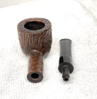 In order to mainstream the listing process I am updating the template. ALL pipes will be reamed to a smooth chamber removing most carbon in order to make sure there are no internal cracks, charring or burnout. The airway will be cleared of any obstructions. The exterior of the pipe will be cleaned and polished to bring out the grain and check for any cracks or repairs. Any oxidation will be removed from the stem, treated with obsidian oil and or polished. I NEVER sand or "top" the bowl keeping the pipe dimensions exactly as the carver intended it to be, so most pipes will have slight rim darkening. I will always show High def rim pictures. *** Unless noted, I DO NOT clean the internals of the pipe*** As always, returns are accepted - no reason needed! PIPE DETAILS: Some very light scratches in the ebonite stem near the button as shown. Light contrast stain. Thick walls, excellent chamber showing little use. MEASURMENTS: Chamber id is 7/8" wide Chamber is 1 1/4" deep Bowl is 1 5/8" tall Bowl od is 1 9/16" wide Some internals may need a little more cleaning for your liking. Please see the HD pictures as part of the description. If the rim of the bowl is out of focus, I was trying to show the interior of the chamber. I Ship Thru ebay so you will receive all tracking information and can follow the package . *****I DO NOT make a profit on shipping!! Price of shipping WILL be on the label. International shipping available thru Ebay. Ebay sets all International shipping rates and fees. I will wrap it very securely so this pipe will arrive just as you see it. Barring any unforeseen circumstances, I will ship within 24 hours and most often the same day. *Pipe holder is NOT part of the auction.