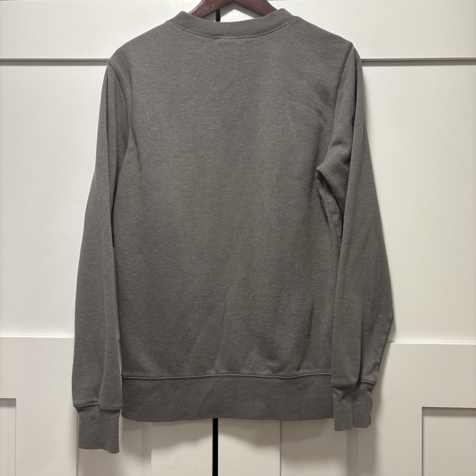 The product is a men's The North Face Heritage Patch Fleece Crewneck Sweatshirt in Military Olive color, size Small. This pullover sweatshirt is made of polyester fleece fabric, featuring a solid green color with a military-inspired design. It is designed for regular fit and is perfect for outdoor activities or casual wear. The North Face brand ensures quality and durability, making this sweatshirt a stylish and functional addition to any man's wardrobe.