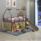 Origin: Malaysia | Color: Gold | Material: Metal | Style: Contemporary | Application: Bedroom Bed Specification: Twin Size | Bunk Type | Box Spring Not Required | Metal Frame 📏 Product & Package Dimensions Type Length (Inch) Width (Inch) Height (Inch) Weight (Lbs) Assembled Product 76.69 97.83 74.65 82.50 Package 79.13 15.94 7.28 92.80 ✨ Key Features Playful Haven for Imaginative Play: Turn your kid's bedroom into a fun sanctuary with this house-shaped bunk bed equipped with a smooth slide! Comes with a pennant banner flag and luminous star stickers for DIY decoration—let your child unleash creativity. The lower bed's curtain creates a cozy private nook, perfect for hide-and-seek or quiet reading, fostering imagination and a sense of security. Kid-Centric Safety Design: Safety is our top priority! This bunk bed features a fully sealed slide to prevent body parts from getting caught, smooth edges to avoid scratches during climbing, and a thoughtfully designed under-bed area that reduces the risk of head bumps. Reinforced guardrails keep your little one safe while sleeping, creating a secure space for play and rest. Superhero-Inspired Color Scheme: Elevate the bedroom with Marvel-inspired colors! Choose from Spider-Man red, Captain America blue, or Iron Man gold (this one is Gold!). These vibrant hues spark kids' interest and fit perfectly with superhero-themed decor, making it a favorite for boys and girls. Space-Saving & Multi-Functional: Maximize bedroom space with the clever bunk design! The lower area can be used as a play zone, storage space, or even a reading corner—turning your child's room into a versatile area that grows with them. Sturdy & Noise-Free Construction: Built with a heavy-duty square tube metal frame, this bed offers exceptional stability and supports up to 350 lbs. Exclusive all-around mute buckles fix the slats firmly, preventing noise from slat movement or tossing and turning—ensuring a quiet night's sleep for the whole family. Easy Assembly & No Box Spring Needed: Comes with clear step-by-step instructions and a helpful assembly video. All parts are labeled for hassle-free setup. 20 sturdy metal slats provide strong mattress support, eliminating the need for a box spring and preventing mattress sagging. Mattress Recommendation: For safety and comfort, use a mattress that is 74"-75" long and 37.5"-38.5" wide. Mattress thickness should not exceed 6" (minimum 4" recommended) and must be at least 5" (127 mm) below the upper edge of the guardrails. 🛡️ Our Guarantee 1-Year Quality Warranty: We stand behind our product! Enjoy a 1-year warranty against manufacturing defects. If you encounter any quality issues, our customer service team is here to help. 30-Day Free Return & Exchange: Not satisfied with your purchase? Enjoy a 30-day free return and exchange policy (terms apply). Shop with confidence! Note: Due to manual measurement, there may be a slight difference in dimensions. Color may vary slightly due to lighting and monitor settings. All accessories (slide, curtain, pennant banner, luminous stickers) are included in the package.