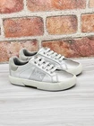 Michael Kors girls toddler silver low top slip on sneakers in good preowned condition no rips no holes no tears. Exact pair of sneakers in the photos is the exact pair of sneakers you will receive. please visit our store a few more items like this.