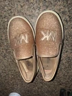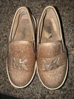 Elevate your little girl's style with these Michael Kors sneakers in gold. These slip-on shoes feature a low top shoe shaft style, perfect for casual occasions and walking activities. The synthetic upper material is lightweight and comfortable, making it an ideal choice for toddlers. The sneakers are adorned with the iconic Michael Kors logo, giving it a trendy and fashionable look. The flat heel style is perfect for kids who love comfort and convenience. These sneakers are a must-have for any little girl who loves to keep up with the latest fashion trends.