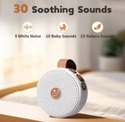 Mini Portable Sound Machine White Noise Machine with 30 Soothing Sounds for Baby. AMAZON OPEN BOX About this item 🔹【 Mini Yet Powerful 】This is the most powerful sound machine in its size with 30 soothing sounds, 32 volume levels, rechargeable, auto-off timer, memory function and flexible clip. This mini sound machine is easy to fit in your purse, bag or suitcase, making it easier for your baby and you to sleep undisturbed wherever you are. Sleep sounds for babies on the go. 🔹【 Loud Speaker, Effctively Masks Noise】The small white noise machine has the highest volume level on the market in the same size sound machine and it has 32 levels of volume, which can loud enough helps block disruptive environmental noises, help you improve sleep, focus on, office privacy, and meditation, perfer for home, office or travel. 🔹【Sleeping Better with 30 Soothing Sounds 】This portable sound machine baby with white noise, brown noise, pink noise, lullabies, fan, rain, hush, wave, bird, fire, meditation and so on. It is not only a sleep soother machine for baby and kids, but also an ideal white noise machine for adults which can cover background noises for sleeping, working and relaxing. 🔹【 Rechargeable Portable Baby Sleep Aid 】The travel white noise machine with its small size but can be used for up to 22 hours, and it can easily fit in your backpack so that you can soother your baby anywhere. It not only has soft lullabies, but also has the sound of the mother's heart, creating a peaceful sleeping environment for the baby. A best baby sound machine for moms. 🔹【 4 Timer and Memory Function 】Continuously play, 30, 60, or 90 minutes, helpful for sleeping well all night or taking a nap. In addition, the memory function will automatically remember the previous setting, no need to reset for next use.