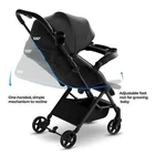 Package: 1X Mompush Lithe V2 Lightweight Stroller + Snack Tray, Ultra-Compact Fold & Airplane Ready Travel Stroller, Near Flat Recline Seat, Cup Holder, Raincover & Travelbag Included Description: Polyester 175° NEAR-FLAT RECLINE - Fully reclining backrest and adjustable footrest providing a lie flat mode that is perfect for newborns. 3-Position reclining backrest with easy one-hand adjustment. KEEP IT LIGHT - Ultra-lightweight at under 15 lbs, allowing you to effortlessly navigate the world. We've upgraded the folding carry mechanism to a carry handlebar, elevating the user experience and simplifying storage, whether in your car's trunk or a discreet home corner. ONE SECOND FOLD – One-handed, one step fold for on-the-go convenience. Fit into most overhead airplane bins. Travel bag included for traveling and carrying stroller with ease. MAXIMUM PROTECTION –The large UPF 50+ canopy provides complete shade protection from harmful UV rays, while the extendable mesh ventilation panel ensures better air flow. Included rain shield to keep baby dry. BUILT-IN TRAY - Features a detachable child tray, provides a durable, easy-to-clean surface for your child's snacks and drinks, keep baby satisfied while strolling. Tray folds with the stroller.