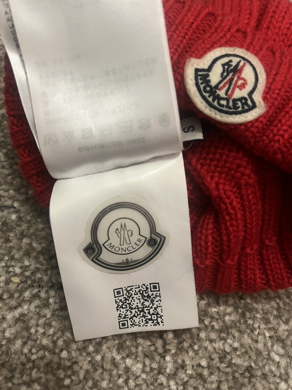 Kids Baby Authentic Moncler Red Beanie Cable Knit Wool Hat. Size Small Great condition