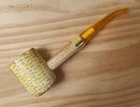 This listing is for one (1) brand NEW and UNSMOKED Missouri Meerschaum Legend corn cob pipe. These are NOS (new old stock) pipes with the classic red labels, and are fitted with a brass ferrule to enhance the looks. They are straight pipes with half-bent filtered bits, which you could easily swap with a standard straight bit if you prefer. Please note: Five (5) pipes are available, so you may not receive the same individual pipe in the photos, but the one you receive will be nearly identical. Thank you for looking! ---------- For tobacco use only. Must be 21 years or older to purchase. By purchasing this listing, you agree that you are of legal age to purchase, possess, and use tobacco products. Please note that returns are not accepted on this listing.