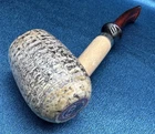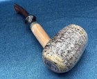 Company Details: Washington, Missouri has long been known as the "Corn Cob Pipe Capital of the World." It was the Missouri Meerschaum Company, still the world's oldest and largest manufacturer of the cool, sweet-smelling corn cob pipes, that began the tradition for which Washington became famous. In 1869 Henry Tibbe, a Dutch immigrant woodworker, first began production of the corn cob pipe. Legend has it that a local farmer whittled a pipe out of corn cob and liked it so much he asked Henry Tibbe to try turning some on his lathe. The farmer was well-pleased with his pipes so Henry made a few more and put them for sale in his shop. They proved to be such a fast selling item that soon Tibbe spent more time making pipes for his customers than working with wood. Soon Tibbe went into full time production of corn cob pipes. In 1907, the H. Tibbe & Son Co. became the Missouri Meerschaum Company. The word Meerschaum is taken from a German word that means "sea foam". It is a Turkish clay used in high grade pipes. Tibbe likened his light, porous pipes and their cool smoke to that of the more expensive meerschaum pipes and coined the name "Missouri Meerschaum" for his pipes. Tibbe and a chemist friend devised an innovative system of applying a plaster-based substance to the outside of the corn cob bowls. In 1878, Tibbe patented this process. A nationwide distribution system was established for the sale of his pipes. Other pipe firms also developed; by 1925 there were as many as a dozen corn cob pipe companies in Franklin County, most of them in Washington. Today, Missouri Meerschaum stands alone as the first and only surviving piece of the living history. These gentle pipes are smoked and loved all over the world as well as being used as souvenirs, often imprinted with the name of the city, business or event. (Pipedia) Pipe Details: Brand - Missouri Meerschaum Line - Cornell & Diehl Charles Towne Cobbler Shape - Bent Billiard Age - Modern Dimensions: Weight - 1.4 oz Length ~ 5.8" Chamber Diameter ~ 0.75" Chamber Depth ~ 1.7" Stem Material - Red Acrylic Filter - Unfiltered With a shared rustic aesthetic and prime spot in rotations and cellars across the pipe smoking community, a collaboration between boutique blending house Cornell & Diehl and Missouri Meerschaum seems quite fitting. This affable bent Billiard, modeled after an old Missouri Meerschaum shape, features an easy, jaw-hanger bend as well as a comfortable mouthpiece of Italian acrylic. Known as the Charles Towne Cobbler, it's a classic cob design with plenty of rustic style, not to mention a bit of old world refinement. Sanitized and ready to join your collection. (See pictures)