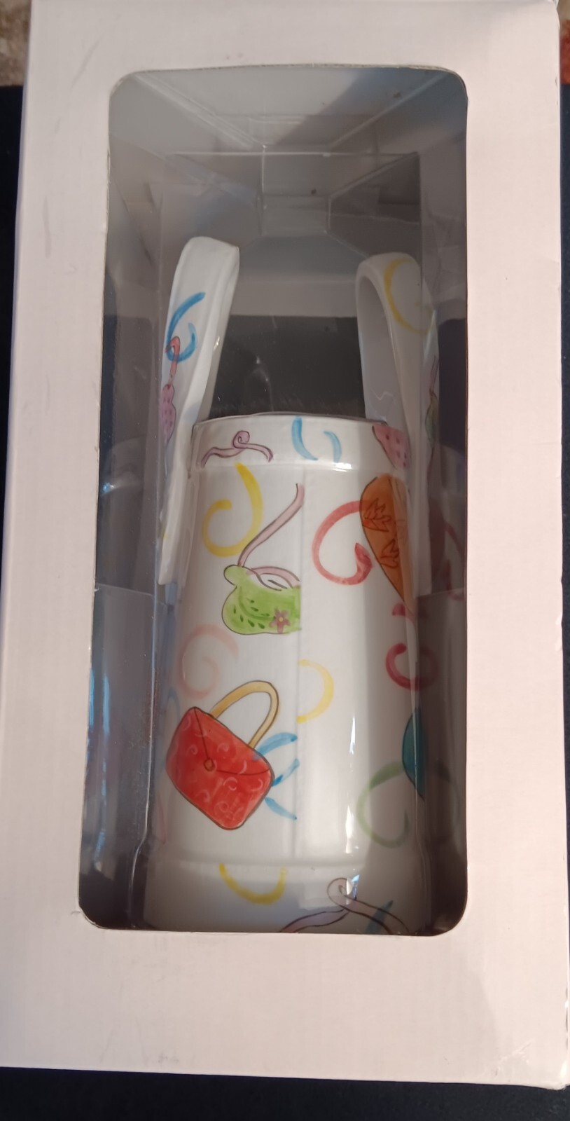 This is a New Old Stock (NOS) ceramic novelty money bank, designed in the shape of a shopping bag or purse. The item has never been used and remains in its original packaging. Manufactured in China and marketed by Wal-Mart Stores, Inc., this is a fun decorative piggy bank suitable for display, gifting, or collecting novelty banks. The ceramic surface features colorful handbag-themed artwork. ✔ Ceramic construction ✔ Still bank (no moving parts) ✔ Approximate height: 9 inches ✔ You will receive the exact item shown ✔ Original box shows light storage wear only Ships quickly by the next business day.