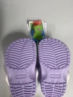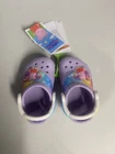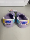 Dress up your little one's feet with these adorable Crocs clogs featuring the beloved Peppa Pig character. These slip-on shoes are perfect for casual wear and walking activities, with a comfortable rubber outsole and a synthetic upper material. The shoes are designed for unisex babies and toddlers, with a UK shoe size of 4 and a US shoe size of 4. The classic style and purple color make these shoes a must-have addition to any child's wardrobe. The clogs are manufactured in Vietnam by a trusted brand and feature a rubber insole material for added comfort. Get your hands on these cute and functional shoes for your little one today!