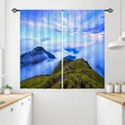 Landscape Kitchen Curtains Nature Theme Autumn Mountain Cloud Forest Lake Scene