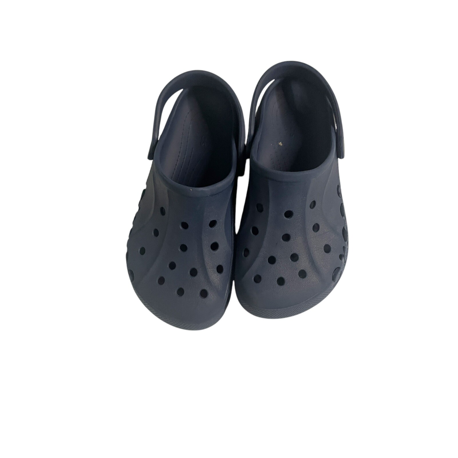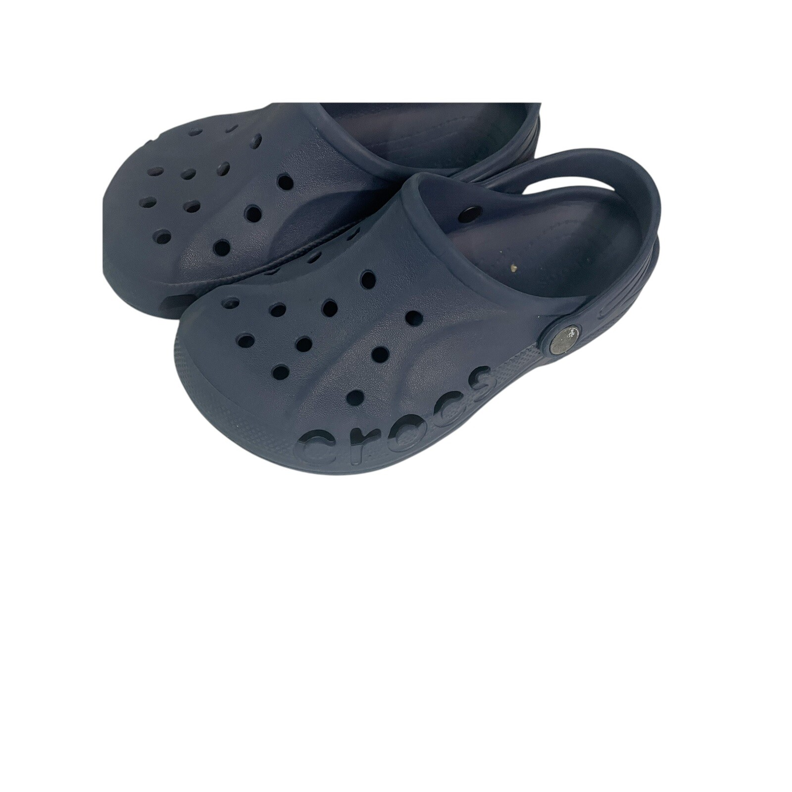 The Crocs Kids' Classic Clogs in Navy Blue, size J3, are slip-on shoes made for casual wear and travel. Featuring a low top style with a closed toe, they have an ankle strap for a secure fit. These lightweight, waterproof clogs are vegan-friendly and breathable, with an EVA upper and synthetic outsole for comfort and durability. in good condition All Measurements Are Approximate Please email us with any questions! ** LIKE THE ITEM BUT NOT THE PRICE, REASONABLE OFFERS ACCEPTED