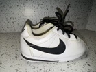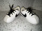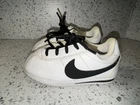 Elevate your toddler's sneaker game with these Nike Cortez shoes in a classic white and black colorway. Perfect for casual wear, these shoes feature a low top design with lace-up closure for a secure fit. The leather upper and fabric insole provide comfort and durability, while the flat heel height is ideal for walking and playtime. With a unisex design and colorful theme, these shoes are suitable for any young fashionista. The Nike brand ensures quality and style, making them a must-have addition to your child's shoe collection. Don't miss out on the opportunity to give your toddler the gift of style and comfort with these Nike Cortez shoes. Condition is preowned from a smoke free home. Normal wear noted.