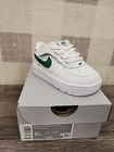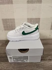 Introducing the Nike Air Force 1 Low EasyOn Baby/Toddler Shoes in White Malachite 6c. These shoes are perfect for any occasion, whether it's for activewear, casual wear, or workwear. They come with a round toe shape, hook-and-loop strap closure, and a flat heel height of under 1 inch. These sneakers are designed for unisex kids and are made with synthetic upper and lining material, as well as a synthetic outsole material. They also feature cushioning, comfort, and an adjustable strap. These shoes are perfect for walking, playing, and casual activities. Get your hands on these Nike Air Force 1 Low sneakers today!