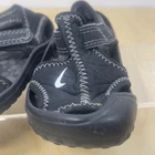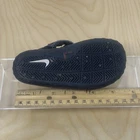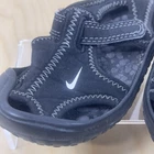 The Nike Black Water Sandals SUNRAY PROTECT Baby Shoes are designed specifically for babies, with their sizing determined by a ruler for a perfect fit. These black sandals feature the iconic Nike swoosh and are part of the Nike Baby product line, ensuring both style and quality. Perfect for protecting your little one's feet while they explore and play, these sandals are a must-have for any baby's wardrobe. Size has worn off, see picture with ruler dimension