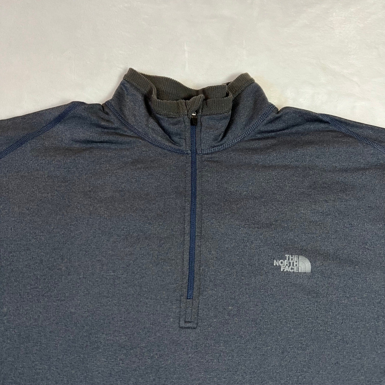 The North Face Men's Large 1/4 Zip Pullover Jacket Sweatshirt Size Large Casual CONDITION: Pre-Owned. Gently Used Condition. FLAWS/ALTERATIONS: There is a faint stain on the front. Please see the last picture. COLOR: Blue w/ grey trim SIZE: Men’s Size Large DETAILS: Pull over 1/4 zip Long sleeve Fleece lined Stretch MEASUREMENTS: Chest: 23" Front Length: 27.5" Back Length: 28.5" **All measurements are approximate and are taken flat** MATERIAL: 89% Polyester 11% Elastane Bundle 2 OR MORE items to save more! Reasonable offers are welcomed! TAGS: Casual Comfy Fall Winter Travel Vacation Minimalist Neutral Classic Staple Outdoors Gorpcore Outerwear