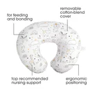 Cover Fabric 65% Polyester, 35% Cotton Inner Fabric: 80% Polyester/20% Cotton Imported CREATED FOR COMFORT: Designed by a mom, this nursing pillow provides relief to your arms and back by lifting your baby to a more ergonomic position when breastfeeding, bottle feeding, and bonding YOU HAVE OPTIONS: C-shaped design allows for multiple feeding styles—cradle, cross cradle, football hold, bottle feeding EASY CARE, MACHINE WASHABLE: Machine washable and dryable because messes happen MORE COVERS AVAILABLE: Comes covered in a removable cover, and additional covers are sold separately so you can have backup on laundry day AWAKE-TIME ONLY: This product is for baby’s adult-supervised awake-time for feeding and bonding, not for sleep