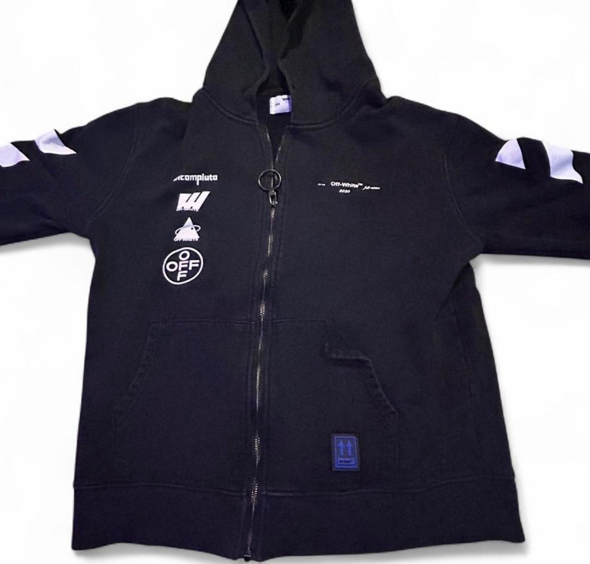 OFF-WHITE authentic zip up hoodie. Being sold online for $560 but the pocket is folded (pictured) so i’m selling it for $350. i’ll take offers!