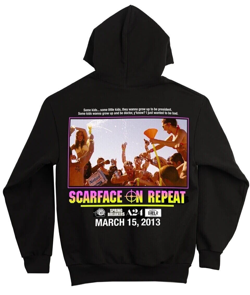 Online Ceramics & A24 Spring Breakers Long Sleeve Hoodie Large - Scarface on Repeat Brand New & Unworn Still sealed directly from Online Ceramics Limited Edition & Out of Print The first two pictures are stock photos. You will receive the bagged item as pictured.