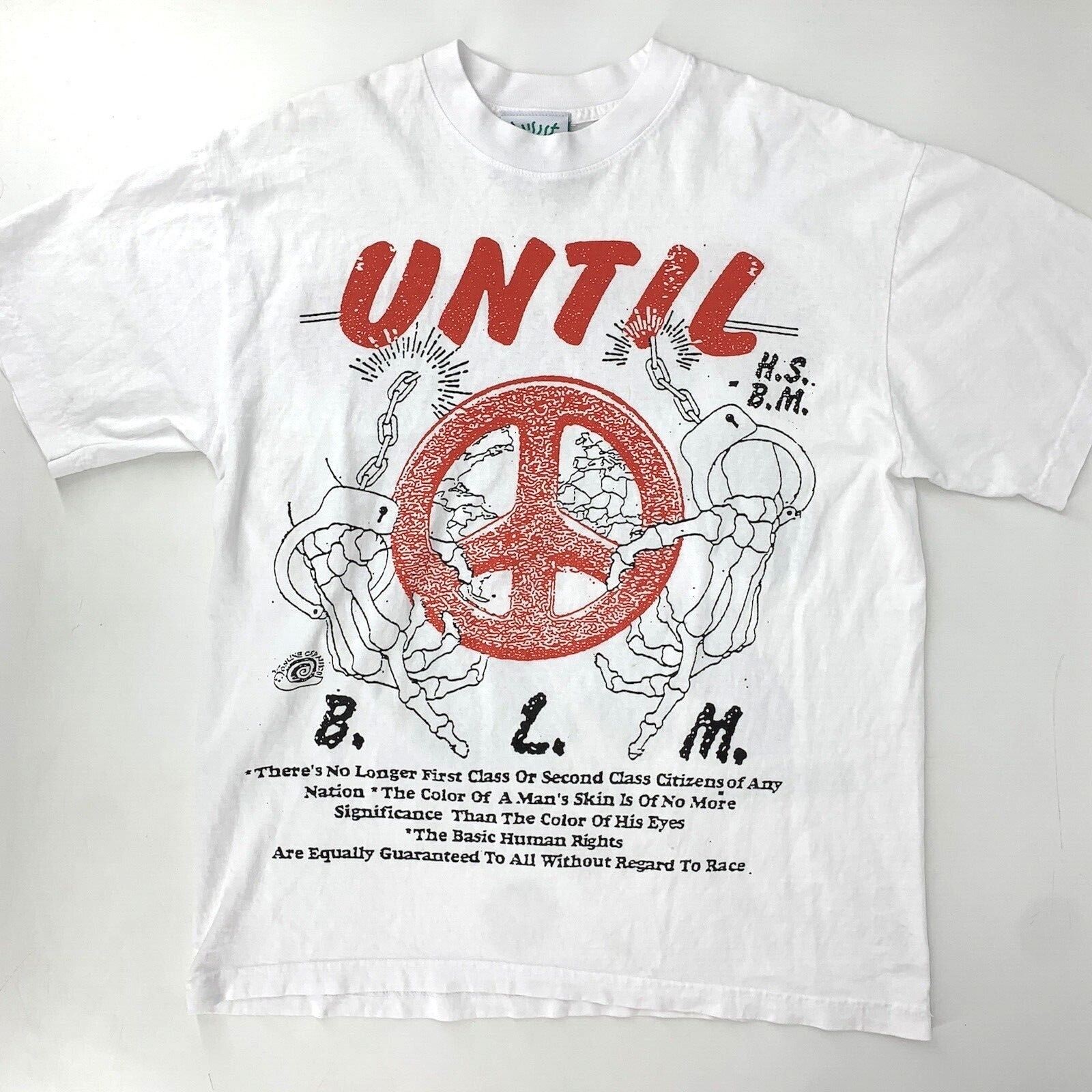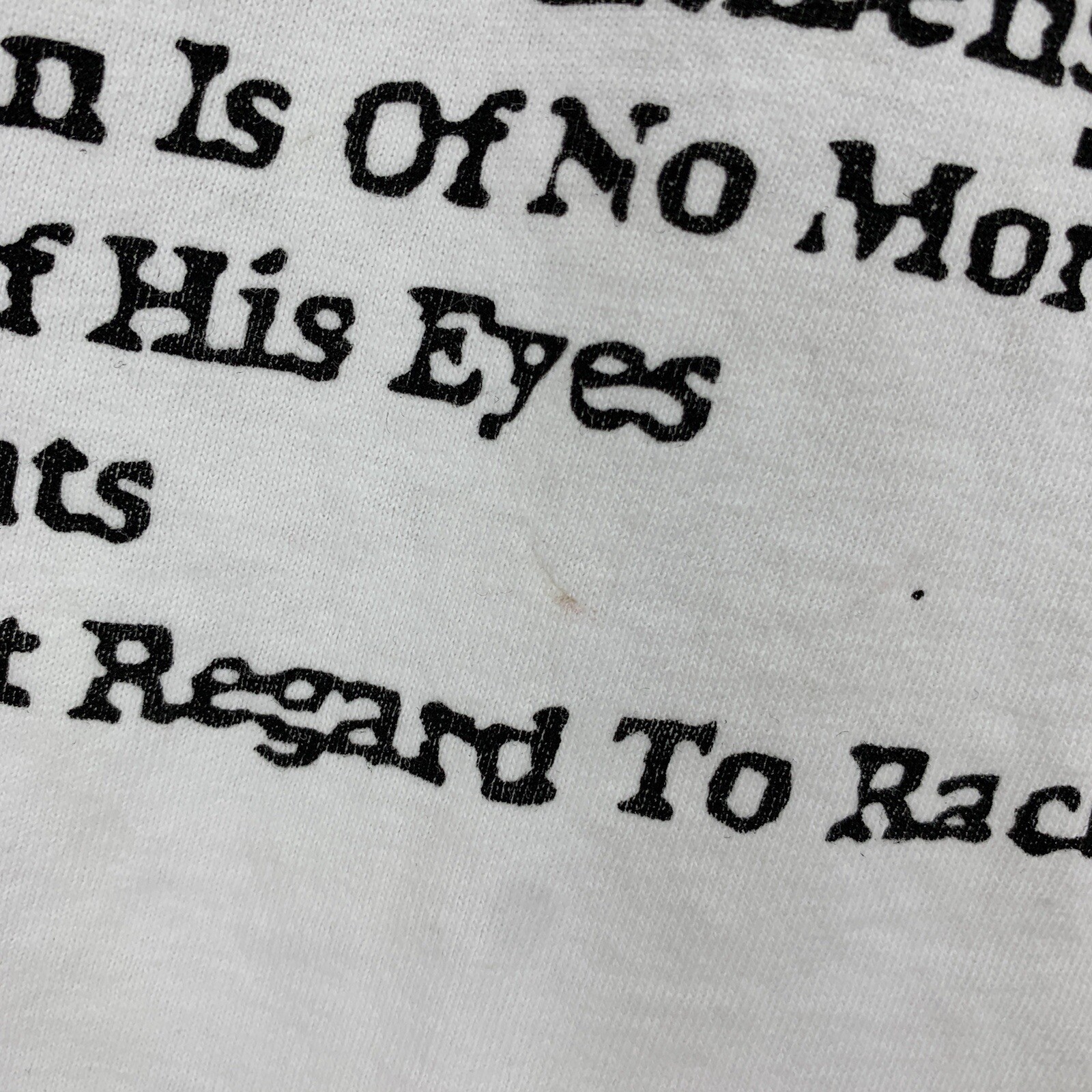 Absolutely love this shirt! The double-sided design is bold and meaningful—feels great knowing I'm repping a powerful message. Super soft 100% cotton fits true to size with a comfortable relaxed cut. Super fast shipping and the minor spots mentioned are barely noticeable. Perfect condition overall! Happy with the purchase and would definitely recommend.