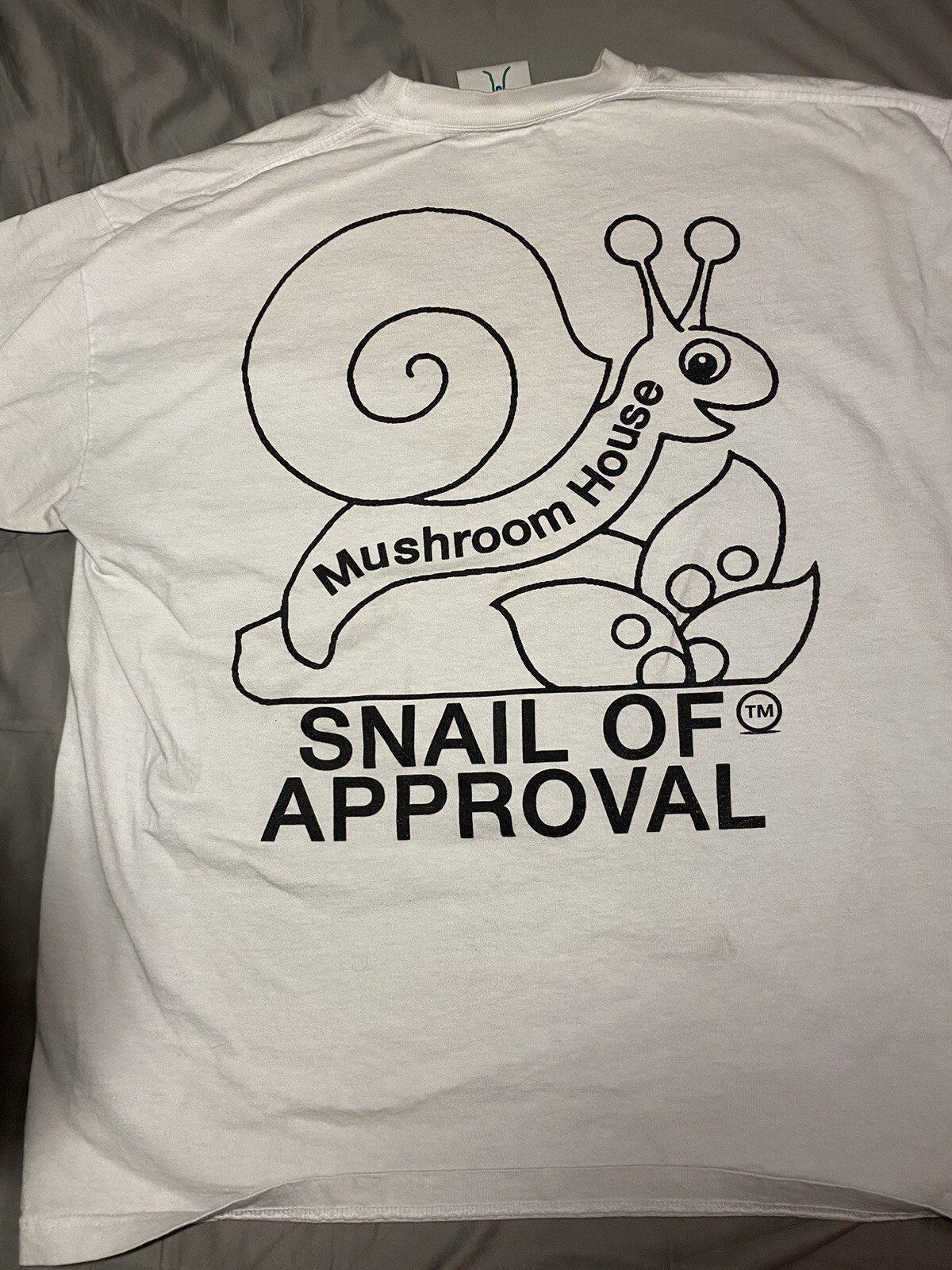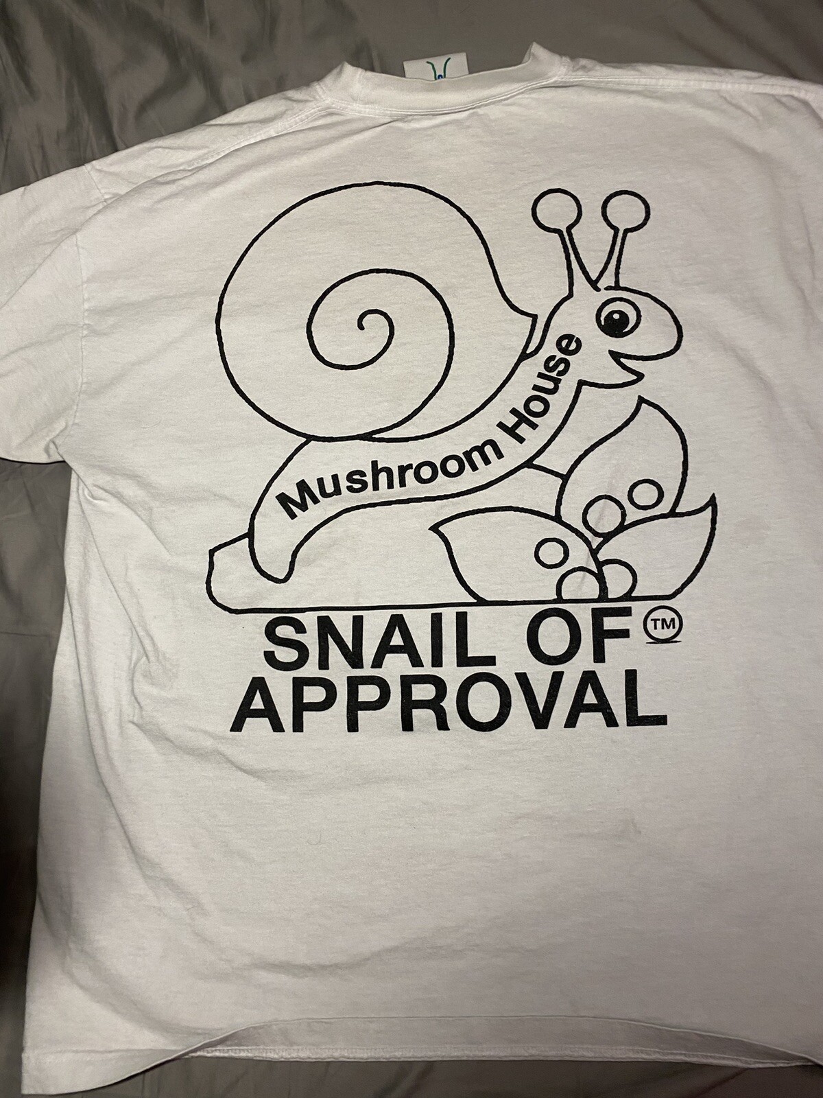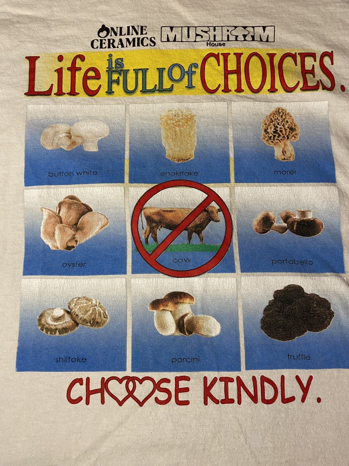 FREE SHIPPING Online Ceramics Eat Mushrooms White Tee Shirt XL. Slight stain on front see photos Looking for best offer FREE SHIPPING