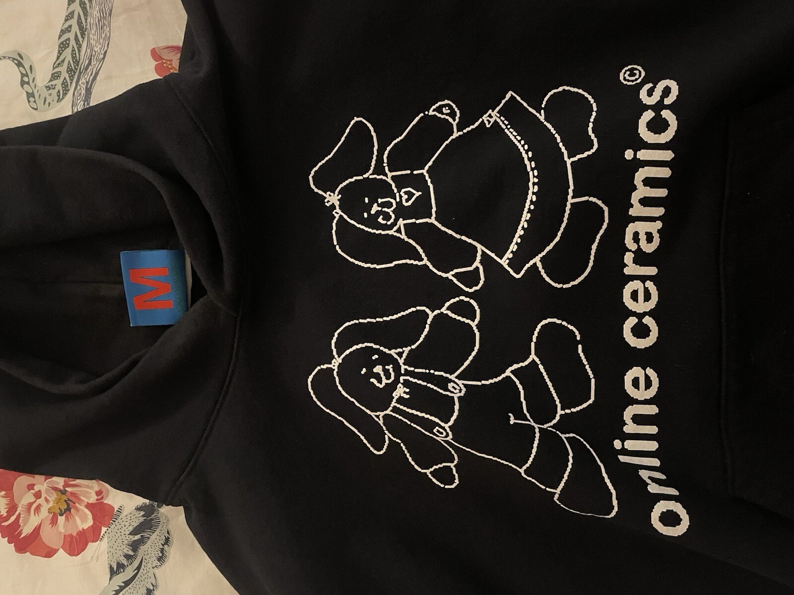 Online ceramics navy bunny hoodie rare in excellent condition. Slight unstitching on one of cuffs (see pics). Can be fixed very easily though.