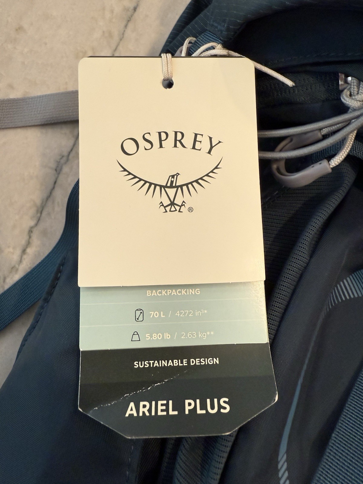 New, Osprey Ariel plus 70L women’s backpack XS/S Ready for your next adventure