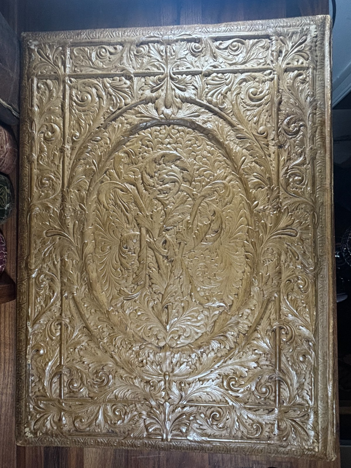 The Victoria Psalter, Illustrated by Owen Jones A spectacular and richly illuminated edition of the Psalms of David , designed and chromolithographed by the celebrated Victorian designer Owen Jones and published circa 1861–1862 . This is one of the most visually impressive 19th-century devotional works, produced as a prestige object for the Victorian middle and upper classes and dedicated to Queen Victoria herself. This copy contains 52 leaves , each lavishly printed in full chromolithography with ornate borders, illuminated initials, and decorative panels. Every leaf features unique page ornamentation , a hallmark of Jones’s design philosophy and colour theory. The book retains its original relievo binding — an embossed, sculptural style of binding over heavy boards, characteristic of the finest Victorian gift books. These bindings were produced using a specialised embossing press and are themselves highly collectable. Condition Binding: Original relievo embossed leather boards , gilt edges, some expected age wear. Pages: Clean and bright , chromolithography vivid; light age-toning to margins in places. All original. Collation: 52 leaves complete and continuous from Psalm 1 to Psalm 150. Spine: Minor cracking at the very top and bottom. This specimen was previously repaired. There are added tissue guards to protect the leaves within. About Owen Jones (1809–1874) Owen Jones was one of the most influential designers of the Victorian era — an architect, theorist, typographer, and colour innovator. His landmark book The Grammar of Ornament (1856) shaped generations of designers and established many of the decorative principles of modern design. Jones was a pioneer of chromolithography , insisting that high-quality colour printing could elevate the printed book to the level of medieval illuminated manuscripts. The Victoria Psalter is often regarded as one of his crowning achievements , combining meticulous ornament, vibrant colour, and cutting-edge 19th-century printing technology. His work influenced Arts & Crafts designers, Art Nouveau artists, and even early modernists. Historical Significance of the Victoria Psalter Produced during the height of Victorian decorative arts. Dedicated to Queen Victoria , lending the book its name and prestige. Printed by Day & Son, the foremost chromolithographers of the period. Created as a luxury devotional volume, intended to echo the splendour of medieval illuminated manuscripts. Each leaf features unique ornamental borders , showcasing Jones’s mastery of geometrical and floral patterns. Surviving copies — especially in their original bindings — are increasingly scarce . Owen Jones aimed to merge medieval sensibility with industrial-age technology, and the Psalter represents this vision at its most mature. Why Collectors Want This Book Decorative Arts & Design Collectors Jones’s ornamental work is foundational to Victorian design, making the Psalter a centrepiece in any decorative arts library. Chromolithography Enthusiasts This volume is one of the most ambitious chromolithographic projects of the 19th century. Rare Book Collectors Complete copies in original relievo bindings are increasingly uncommon. Devotional & Biblical Book Collectors Its illumination makes it a standout among 19th-century editions of the Psalms. Art, colour theory, and design historians The Psalter is a prime example of Jones’s colour principles in practice. This is not merely a religious text — it is a museum-worthy artefact of Victorian book design .