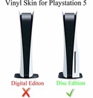 Decal skins for PS5 Standard Disc not for PS5 Digital Edition. Skin Decals including, 1x console skin(front and back), 2x controllers skin Material: Vinyl (not paper), easy to use and stick, easy to remove. No special skill required. Protect your console from scratch & dust. Stylish & fashion design.