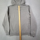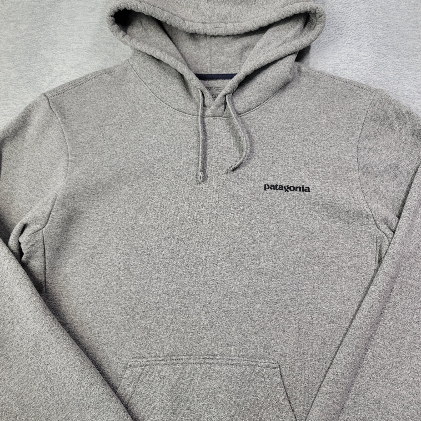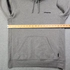 The product is a men's small gray solid Patagonia hoodie with a drawstring closure and logo accents. Made of cotton, this pullover hoodie features long sleeves and a regular fit, making it suitable for activities such as gym training, walking, and hiking. It is a stylish and comfortable addition to any casual wardrobe.