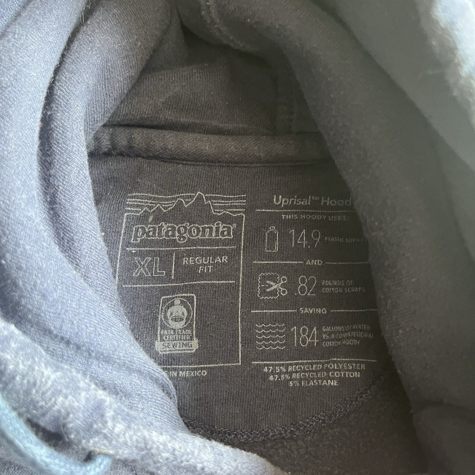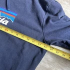 The product is a men's XL blue hooded sweatshirt by the brand Patagonia. Made from a comfortable cotton blend material, this regular fit hoodie features a solid pattern with long sleeves and a drawstring closure. Perfect for casual wear, outdoor activities like hiking, or simply lounging at home, this pullover hoodie is both stylish and functional, making it a versatile addition to any wardrobe.