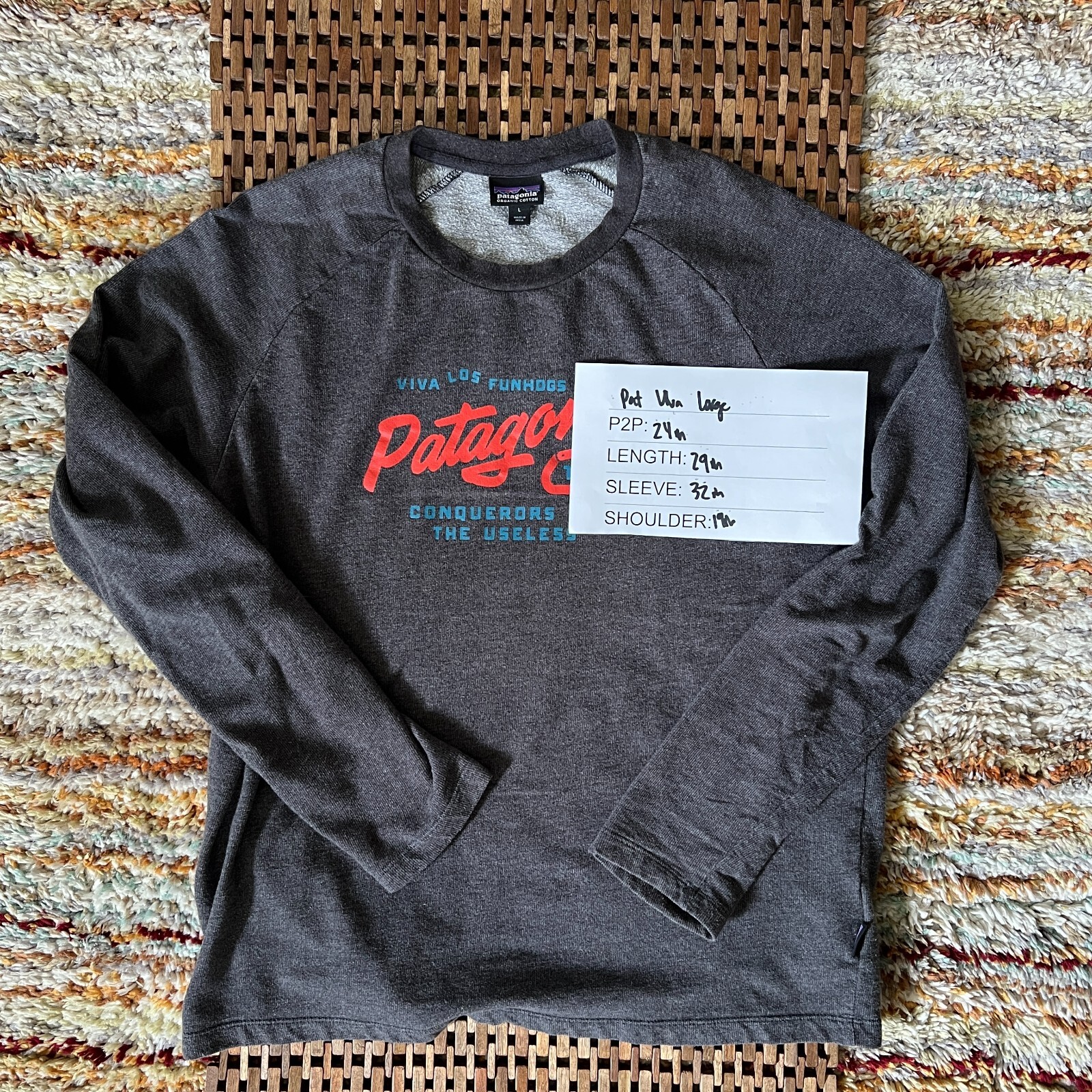 The Patagonia Viva Los Funhogs Crew Neck Long Sleeve Sweatshirt in Grey is a stylish and comfortable pullover sweatshirt designed for men. Made with a cotton blend fleece material, it features a solid gray color with a crew neck and long sleeves, making it a versatile piece for outdoor activities or casual wear. The lightweight fabric ensures a breathable and comfortable fit, while the regular fit provides a relaxed and easy-to-movement feel. Machine washable for easy care, this sweatshirt combines quality, style, and functionality for the modern man.