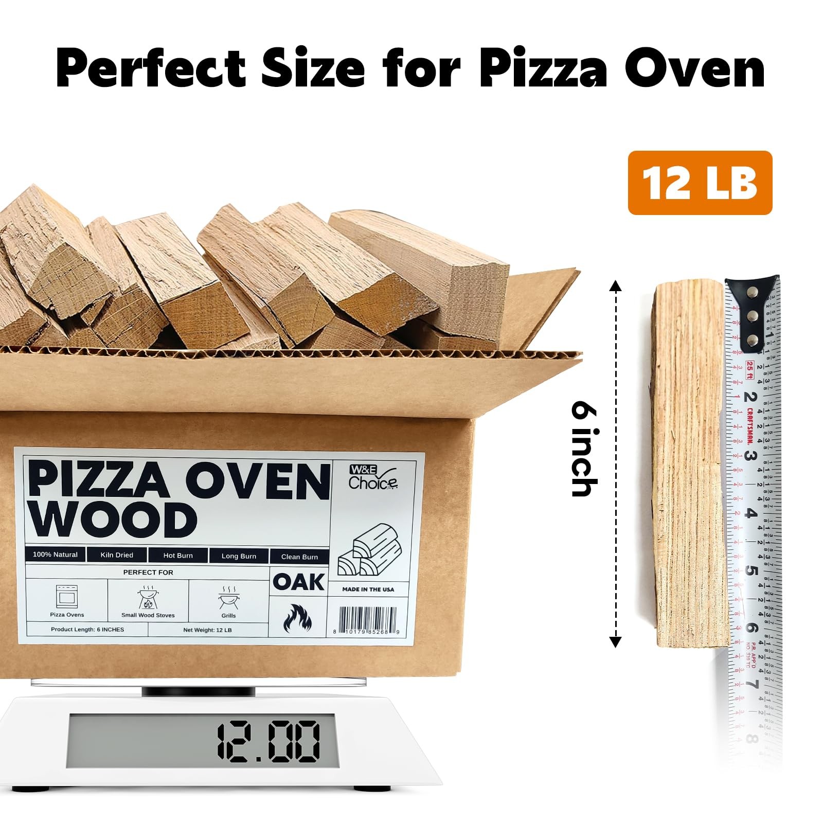 12LB & 6-inch: A box of 12lb pizza wood, each measuring 6 inches, fits most pizza ovens, solo stoves, and camping stoves. No need to adjust the size; it can be lit directly, saving you time and effort 100% Natural Oak: Pizza wood is made from natural oak, offering a long-lasting, stable burn that ignites quickly and easily. It burns at a high temperature, cleanly, and without black smoke, adding a unique flavor to your pizza Kiln-dried & uniform heat conduction: Each oak logs is kiln-dried. After kiln drying, the wood has a uniform moisture content and stable heat conduction. It can release heat continuously and evenly, with a temperature of up to 750℉ , so that the pizza crust is cooked uniformly from the edge to the center Smoky flavor: Oak itself has a mild and elegant natural aroma. Oak will not cover the original flavor of the pizza itself, but will add some smoky flavor to the pizza, which is very suitable for classic Italian thin crust pizza Multifunctional wood block: 12lb oak wood block is enough for multiple uses, not only can be used for pizza oven, it is easy to store and carry, whether it is family dinner, camping or outdoor party, it is an ideal choice