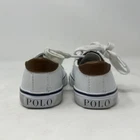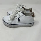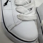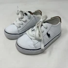 Introducing the Polo Ralph Lauren Toddler Shoes Sneakers Fantor III in White and Blue. These shoes are perfect for your little boy who loves to play and stay comfortable at the same time. They come in a size 5 and are designed with a lace-up closure for a secure fit. The shoes feature the iconic Polo Ralph Lauren logo and are made with synthetic upper material. They are perfect for casual wear and are ideal for boys who love to play sports. These shoes are a must-have for your little one's wardrobe.