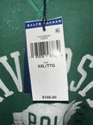 The Polo Ralph Lauren VTG Preppy P-Wing New York University Pullover Sweatshirt in 2XL is a vintage-inspired piece featuring a graphic design with elements of New York University and a winged foot. This green sweatshirt is made of a blend of cotton and polyester fleece, with a crew neck and long sleeves for a comfortable fit. The logo accents and preppy style make it a perfect choice for men looking to add a touch of retro charm to their wardrobe. Machine washable and suitable for various outdoor activities, this sweatshirt is a versatile and stylish addition to any collection.