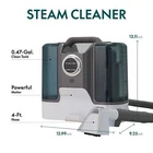 Product Information Product Name: Steam cleaner, Portable Carpet and Upholstery Cleaner, Spot Cleaner for Pets, Stain Remover for Carpet Product Specifications: Lightweight Item Item Code: S09090001 UPC: Product Type: General item Place of Origin: China Main Color: White Main Material: ABS+PC Product Dimensions Assembled Length (in.): 9.25 Assembled Width (in.): 12.99 Assembled Height (in.): 13.11 Assembled Weight (lbs.): 8.82 Package Size Length (in.): 17 Width (in.): 16 Height (in.): 11 Weight (lbs.): 13 Product Features High Power and Versatile Cleaning Modes:: Featuring a 450W motor and a 1200W heating boiler, this steam cleaner offers four different modes:1.Steam cleaning mode with high-temperature steam and vacuum suction.2.Steam disinfection mode with steam and vacuum suction only.3.Cold water spray with vacuum suction.3.Hot water spray with vacuum suction. These modes ensure efficient and thorough cleaning for all your upholstery needs. Large Water Capacity with Leak-Proof Design:: Equipped with a 60.9 oz (1800 ml) clean water tank and a 20.3 oz (600 ml) waste water tank, the cleaner offers large capacity for longer cleaning sessions. Both tanks are designed with excellent sealing to prevent leaks, making it safe and reliable for everyday use. Strong Suction Power for Deep Clean:: With a vacuum power of >10 Kpa, this steam cleaner effectively lifts dirt, stains, and debris from fabric surfaces while simultaneously applying high-temperature steam. The powerful suction ensures your fabrics remain clean and dry after use. Long Reach and Easy Maneuverability: : The 16.4 ft (5 m) power cord and 3.9 ft (1.2 m) hose provide excellent flexibility and mobility, allowing you to clean large areas and hard-to-reach spots without constantly having to switch outlets. Pet Stain Detection and UV Light:: The steam cleaner features a unique pet light that uses UV light to highlight pet stains and bodily fluids, making it ideal for homes with pets. This function helps detect hidden stains that are difficult to spot with the naked eye, ensuring a deeper clean. Description