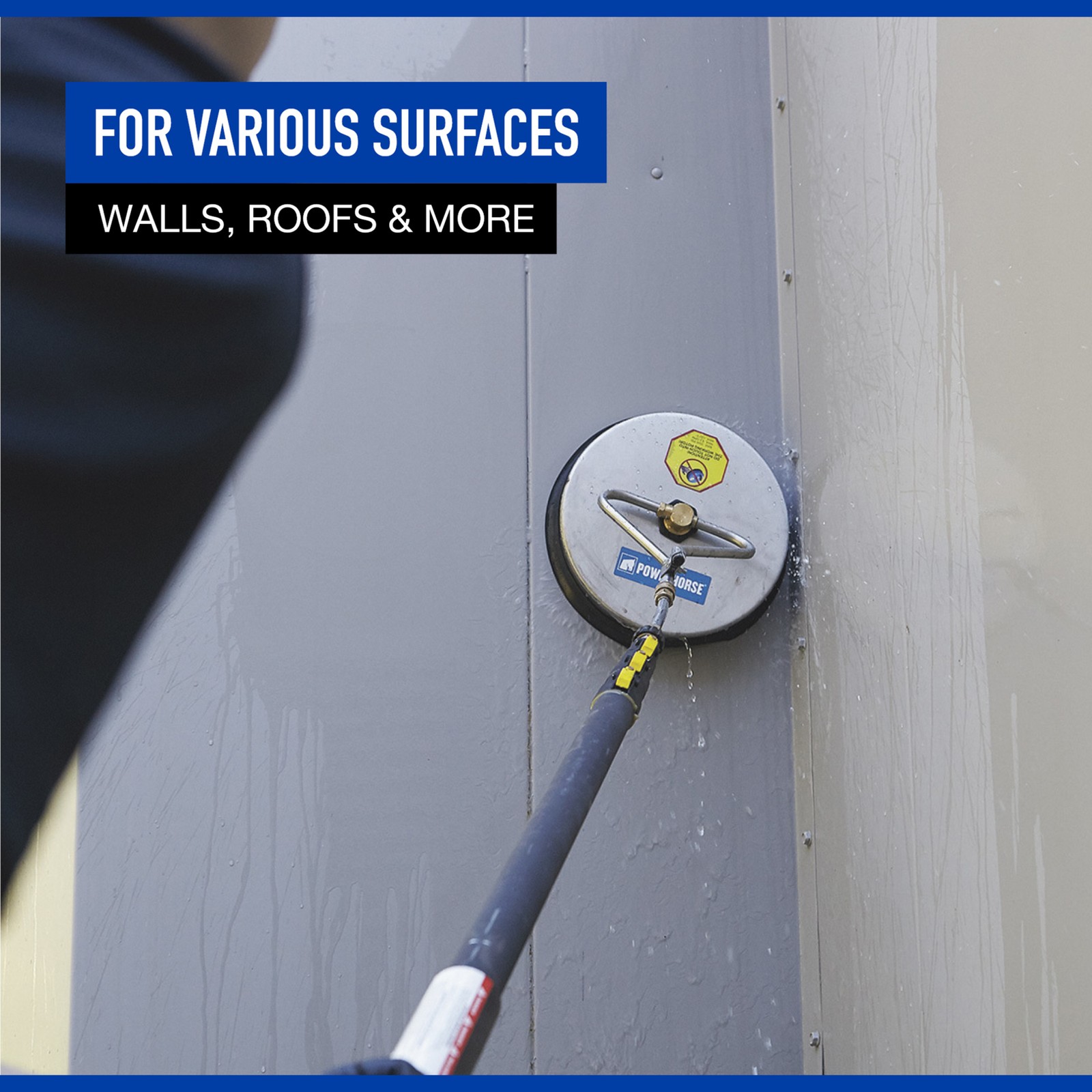 This Powerhorse Pressure Washer Wall Cleaner works with your telescoping wand (not included) for quick and easy cleaning of walls, roofs, pool decks, trailer walls and more. Durable stainless steel construction resists corrosion. Requires pressure washer (not included). Powerhorse Wall Pressure Washer Surface Cleaner, 12.5in. Dia., 3000 PSI, 3.5 GPM Northern Tool Item# 49439 Item Weight: 10.0000 lb(s) Manufacturer: Powerhorse MPN: Warranty: . Product Summary: This Powerhorse Pressure Washer Wall Cleaner works with your telescoping wand (not included) for quick and easy cleaning of walls, roofs, pool decks, trailer walls and more. Durable stainless steel construction resists corrosion. Requires pressure washer (not included). Features + Benefits Payment Instructions You can pay us securely through eBay. All orders will contain an invoice/receipt. IMPORTANT: We will not honor requests to remove invoices or receipts from packages. No exceptions ON U.S. PURCHASES, Northern currently collects sales tax on purchases shipped to all states except: Alaska, Delaware, Montana, New Hampshire, Oregon Shipping Information This product will be shipped by Parcel. Parcel Shipping: Ground Shipped items must be sent to a physical address and cannot be sent to PO boxes. If a PO box address is submitted without a physical address it may delay your order. We cannot ship to APO/FPO boxes. Please note that we do not ship items on weekends or holidays. More information on shipping and handling times can be found on our Store Policies Page . Customer Care We want you to be satisfied with your purchase; please notify us by email if you have any concerns. Before you send an email message, please check our Help Section . We may already have an answer to your question! We are available to answer your email questions Monday through Friday from 8am - 3pm CST, excluding holidays. If your email is sent on a weekend, holiday or after business hours, we will respond to you on the following business day. Returns may be accepted on most items within 30 days of receipt of the item. All returns require authorization from us. Some returns are charged a 15% restocking fee. Please click the Shipping and Payments tab on this item for specific return information and full details. About Our Products Product Warranty: Warranty information and contact details can be found on our Store Policies Page. We are working hard to ensure that the information provided on the eBay product advertisements is accurate and up-to-date. We reserve the right to correct ad errors and/or omissions. Pricing and availability is subject to change without notice. No