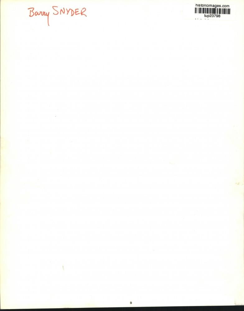 ebay template Note: Please study the images carefully to determine the condition of this vintage photograph, as it may not be in perfect condition. It may contain wrinkles, cracks, and possibly even tears due to its age and how it was handled before it got to us. A scanner may interpret colors and contrast differently than human eyes will, so it is possible that the actual photograph may be slightly darker or lighter in person. This vintage photograph is offered for sale as a collectible item and conveys no transfer of copyright. Press Photo Barry Snider, American Actor - tup23798 This is an original press photo. American actor Barry SniderPhoto measures 8 x 10inches. Photo is dated --none. PHOTO FRONT PHOTO BACK Historic Images Part Number: tup23798 Sell Smarter with Kyozou. Inventory and Ecommerce Management