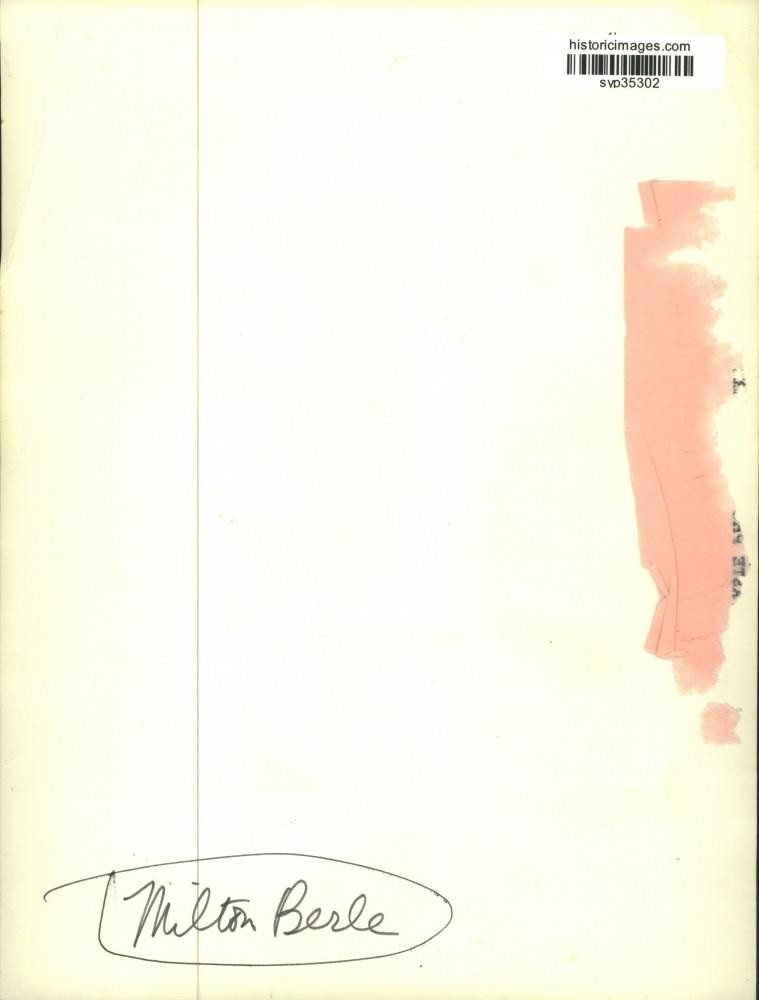 ebay template Note: Please study the images carefully to determine the condition of this vintage photograph, as it may not be in perfect condition. It may contain wrinkles, cracks, and possibly even tears due to its age and how it was handled before it got to us. A scanner may interpret colors and contrast differently than human eyes will, so it is possible that the actual photograph may be slightly darker or lighter in person. This vintage photograph is offered for sale as a collectible item and conveys no transfer of copyright. Press Photo Comedian/Actor Milton Berle - syp35302 This is an original press photo. Comedian/actor Milton Berle.Photo measures 7 x 9.25inches. Photo is dated --None. PHOTO FRONT PHOTO BACK Historic Images Part Number: syp35302 FAQs Q: Can I just download a digital version instead? A: No, we sell only vintage originals and do not make or distribute any copies, including digital ones. Q: Do you combine shipping and invoices? A: Multiple photos won on the same seller ID combine automatically through the eBay checkout process. If you encounter problems with this, send us a message via eBay messaging and we will send you an invoice. Due to eBay limitations, we cannot combine items won on our different seller IDs for a single shipping charge. Q: How quickly do you ship the items once paid? A: We ship within one business day after your payment clears. If you do not receive an "order shipped" email from us by the close of the second business day from submitting payment, please e-mail us via eBay messaging. Q: How do you make sure my photograph arrives safely? A: We package each order between two cross-corrugated pieces of cardboard to ensure that the package is as difficult to bend as possible. We then wrap each order in a plastic sheet to help protect against moisture. We want you to rest assured that we take every precaution to ensure that the photograph you receive will be in the same condition in your care as it was in ours. Q: Will the "Historic Images" watermark be on my photo when I receive it? A: No. This is a digital watermark we use to protect our images. It is not printed on the photo. Q: What are your office hours? A: eBay for us is a business, and a very fun one to be in! We are open M-F 9 to 5 (CST). Therefore, we do not return e-mails and phone calls over the weekend. We observe the following holidays: New Years Day, Memorial Day, Fourth of July, Labor Day, Thanksgiving and the day after Thanksgiving, Christmas Eve and Christmas Day. Q: Where did all these vintage photos come from? A: These original vintage photographs are from various news service and newspaper photo archives from locations around the country including: Boston, Detroit, Tampa, Chicago, Denver, Seattle, New Orleans, Milwaukee, Portland, Spokane, and more. We do not copy or reproduce any photographs -- every item is a unique vintage piece that was housed in a news archive. Q: Can I use this photograph in my book/blog/website? A: The short answer is no. There is no transfer of copyright for republication or reproduction with these photographs when you purchase them, and only photographs taken before 1923 are currently automatically in the public domain. Permission from the copyright holder, which usually can be identified from the back of each photo, must be sought to republish or reproduce the image for any purpose. Q: Do you relist items (in case I miss an auction ending)? A: Auction items that receive no bids are relisted in our store (historicimages-store on eBay) as a fixed-price item and at a higher price than the starting auction price. Q: Do you leave feedback? A: Yes, we always leave feedback for buyers. Our software monitors when our buyers leave us feedback, then notifies us that we can leave feedback for the buyer. Rest assured, if you leave feedback, we will do the same! Check out our family of eBay IDs: historicimages01 Sports Photos historicimages02 Entertainment Photos historicimages03 Americana Photos historicimages04 International & War Photos historicimages05 Transportation Photos historicimages06 Photos of All Subjects historicimages07 Entertainment Photos historicimages08 Newsworthy Photos historicimages09 Entertainment Photos historicimages10 Sports Photos historicimages-store Our largest fixed-price selection historicimages-gallery Hand-picked photos Saturday night auctions About Us Historic Images was formed in September 2009, with a handful of scanners working out of a basement to digitize newspaper photo archives. We have since moved out of the basement, and we can now archive thousands of photos per day. Our company has worked with magazines and newspapers from Detroit, Boston, Denver, Seattle, Tampa, Chicago, and New Orleans, just to name a few. We are constantly adding to our inventory, and have assembled an archive of millions of photos to date. As our company evolved, we began our eBay business, which brings thousands of fresh auctions per week to the world's largest online auction marketplace. Our custom software systems and team of great employees allow us to efficiently scan and sell large photo archives online. At the very core of our company's DNA is a strong commitment to customer satisfaction and strict integrity for our product. Our promise to you is that we will do everything in our power to provide you a great buying experience. Copyright 2009 - Present, Historic Images, Inc. Sell Smarter with Kyozou. Inventory and Ecommerce Management