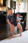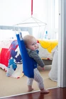 It's so comfortable that baby can even fall asleep! Supports head & neck so can start at 8 weeks up to 30 lbs (or walking stage). Specially made to be responsive to even slight movements of a very young baby--SEE VIDEO below! Older babies delight in vigorous high bouncing! Ergonomic design--designed by occupational therapist. (If baby falls asleep, remove him/her from the Merry Muscles and place him/her in their usual sleep environment.) Not sold in stores! Versatile-- Can hang from ceiling stud or door frame. Folds to less than one inch thick when not in use. Royal Blue COTTON SEAT CAN BE MACHINE WASHED IN YOUR LAUNDRY! Cotton seat allows air circulation and is washable . The Merry Muscles baby exerciser/bouncer has a scientific medically correct design . It was designed by an occupational therapist, approved doctors, chiropractors, child care professionals, and has been loved by Canadian parents and babies for decades! Still quality-made in Canada, since 1979! The angle of the Merry Muscles is such that baby bounces on the balls of the foot to avoid damage to tender toes. The baby is supported on the hips and buttocks, not the crotch, which is especially important for boys! Here's what some parents have told us: "I ordered this item for my daughter in 1983 as a mother, for my daughter's son in 2010 as a grandmother, and now as a godmother. I think this is the most wonderful present a child could ever have and enjoy so much. G.S-P., Quebec" "I borrowed a Merry Muscles for my daycare. I was very impressed with its design and convenience of style. My family are all teenagers now. Baby furniture has come a long way in design in the pat 20 years. Please send a Merry Muscles... Sunshine Family Day Care" "Again, very happy with this Kidalog product! Our baby boy just LOVES this thing. It keeps him entertained for an hour straight and for a 5 month old, that's a REALLY LONG TIME for a baby to be content on their own. It's design is wonderful in that it doesn't squish them. The metal hoop keeps pressure off their body, and the seat / harness gives them terrific support. If he gets tired, he just leans back and rests. It's FANTASTIC. Money well spent in my books! A+++ product! Thomas Christoph "My son absolutely loves it. Worth every penny. I would recommend to others A++ " T.T. "Arrived today, baby loves it, thank you so much!" K.L. "This is awesome! She loves her Merry Muscles :) and super fast shipping A+++ " A.S. Merry Muscles has a unique metal circular hoop to prevent baby's head from bumping into the door. It hangs from any wooden door frame or ceiling stud. Will NOT interfere with door closing when not in use. Merry Muscles holds babies up to 30 lbs, or walking with support, whichever comes first. The bungee support provides a smooth, resilient, bounce. (Toys shown in photos are not included.) Includes hook to screw into a wooden door frame OR ceiling so you can hang the jumper when in use. No tools needed to install it. This is just one of the videos of a very happy baby in the Merry Muscles: https://youtu.be/caW_nygdw1E bouncing Video will open in a new window Using the mobile app? Copy this link into your browser: