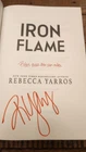 This is a brand new hardcover novel titled "Iron Flame" by Rebecca Yarros from The Fourth Wing / Empyrean Series. It is signed by the author and is a special edition with sprayed edges. The book features a dust jacket and has a total of 640 pages. The story falls under the genres of action, adventure, war & combat, fantasy, and romance, catering to young adult and adult audiences. SEE PICS some sprayed edge missing