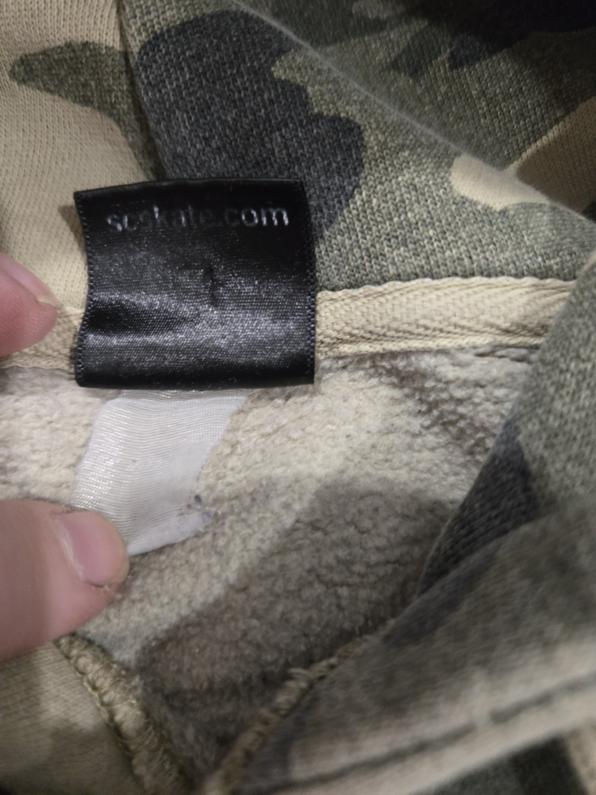 The Santa Cruz Hoodie is a stylish and comfortable pullover with long sleeves, made from a soft cotton blend fleece fabric. Featuring a multicolor design with a skateboarding theme, this hoodie is perfect for men or women who enjoy skateboarding and looking for quality activewear. With a regular fit, hooded design, and convenient pockets, this Santa Cruz hoodie is a. versatile addition to any wardrobe. Easy to care for with machine washable instructions, this hoodie embodies both fashion and functionality for the modern man or woman. We'll loved check pictures. Hard to find camo pattern