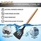 Cooking is an enjoyable and exciting experience. Welcome to ,you will have the better kitchenware and caring service. Why Choose This Kitchen Cooking Utensils Set? ✅ High quality food grade silicone Heat Resistant up to 446°F Premium Wooden Handles Easy to clean & Dishwasher-safe Convenient Storage Comfortable touch Anti-rust & Anti-corrosion 43PCS Silicone kitchen Utensils Set Cover all You Needs: Slotted Turner x 1 Solid Turner x 1 Spoon Spatula x 1 Large Spatula x 1 Soup Ladle x 1 Solid Spoon x 1 Slotted Spoon x 1 Pasta Server x 1 Small Spatula x 1 Spreader Spatula x 1 Basting Brush x 1 Small Spoon Spatula x 1 Egg Separator x 1 Grater x 1 Pizza Cutter Wheel x 1 Spoon Rest x 1 Cake Smoother x 1 Egg Whisk x 1 Tong x 1 Utensil Holder x 1 Oven Mitts x 2 Hooks X 10 Measuring Spoons & Cups x 10 Each one has its unique use. this kitchen utensil set would be your great companion in the kitchen. Sweet Tips: Before use, please wash the kitchen utensils with with dish soap in warm water carefully, and keep them dry after cleaning. Do not scratch the surface with wire balls or sharp tools to ensure its durability. After Service: If you have any question with our product, please feel free to contact us. We will try our best to provide each customer satisfactory solution as soon as possible. COVER ALL KITCHEN NEEDS - This comprehensive 43pcs professional silicone kitchen utensil set includes essential tools like slotted turner, soup ladle, serving spoons, pasta server, tongs, whisk, pizza cutter, spoon rest, silicone spatula, oven mitt, egg separator and so on; Each one has its unique use; Buy it at one time can cover all your needs in kitchen; Extra utensil holder to keep your kitchen organized, it is the wonderful set for you to choose FOOD GRADE SILICONE,ODORLESS - The silicone cooking utensil can use for any type of food since made of high quality food grade silicone; BPA free, you don't need to worry unpleasant odors and it will not react with food or beverages, are healthy for you and your family’s health; The all-around silicone adds softness, with outstanding scratch resistance, no more worrying about food sticking to your cookware, extend the life of all your kitchen pots and pans NON-MELTING WOODEN HANDLE & EASY TO STORE - Made of premium wooden handle, comfortable touch and easy to hold, prevents heat transfer, so you don’t have to worry about scalding the chef’s hands; The small round hole at the end facilitates hanging or you can put it in the holder to save space, this beautiful modern look utensils will greatly enhance your kitchen’s decor HEAT-RESISTANT & EASY TO CLEAN - This utensil set are super heat resistant up to 446°F, can prevent the utensil from melting or produce somke when exposed to heat; Non-stick material make it easy to clean, just simply rinse gently with warm water COMPLETE KITCHEN UTENSILS SET - Integrated stainless steel core, seamless, enhances durability and toughness, helps maintain its shape and flexibility, no warping or cracking; Please note that natural wooden handles may vary slightly in color and texture; Due to the wear and tear on wooden handles caused by dishwasher, these silicone kitchen utensils used for non stick pots are not suitable for dishwashing with a dishwasher