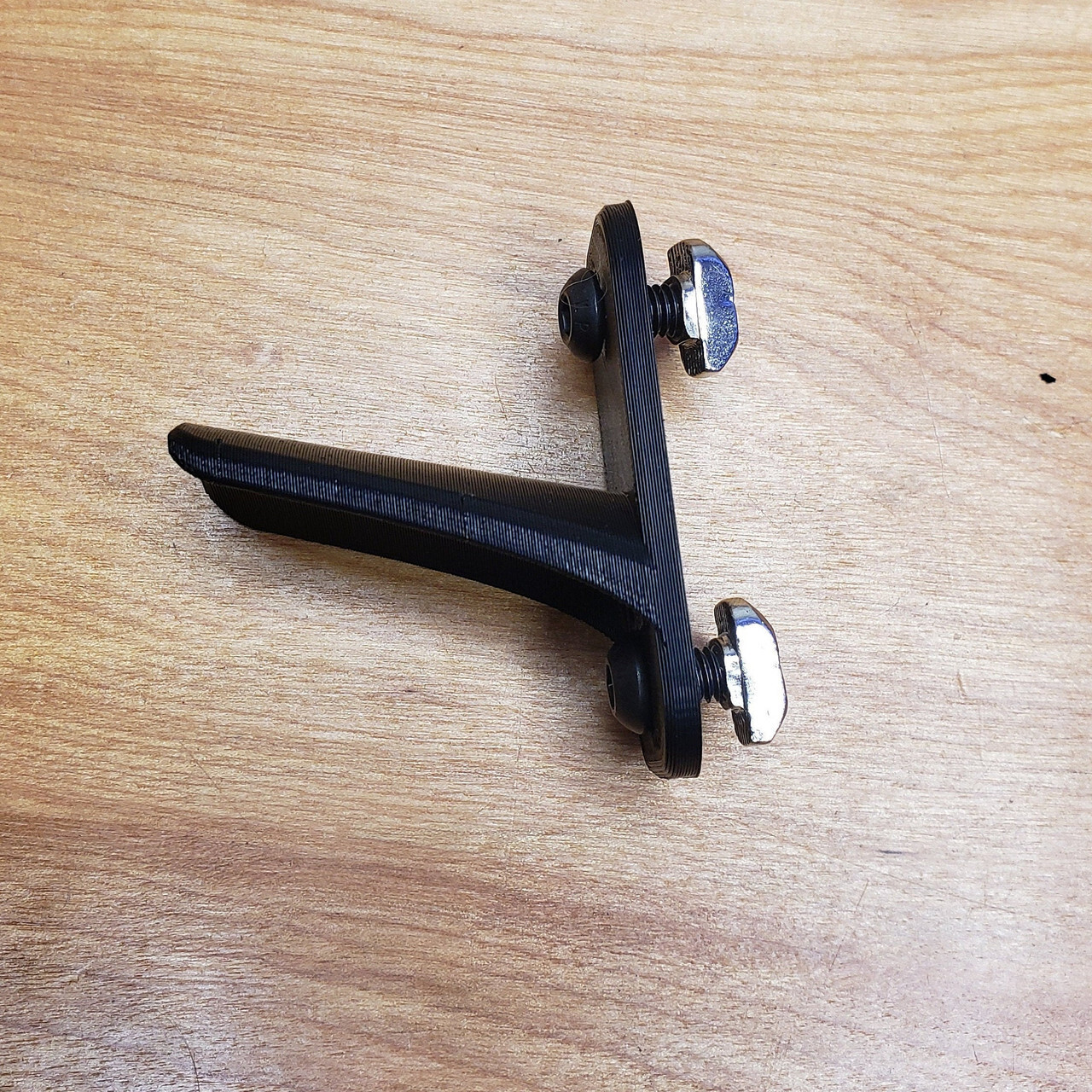 Our sim rig headphone hanger designed to attach to a 40 series 8020 aluminum extrusion using the included hardware. The hardware we include will allow you to install it onto any part of your already assembled rig without having to slide the nuts in from the end of the extrusion. The arm of the hanger is 2'' long and has a slight incline to help gravity keep your headset on the hanger. The mounting holes are designed so that it may be mounted on a vertical or horizontal aluminum extrusion on your rig. As always, our products come with a life-time warranty. If you have any issues with them at all, please reach out to us for support.