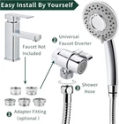 ABS & Stainless Steel & Copper HOME IMPROVEMENT SET: This faucet hose sprayer attachment add a handheld shower head to your existing sink faucet or tub spouts, extend faucet function. Equipped with 5 adapters fit most of kitchen/bathroom/laundry/utility/basement/Garden/RV faucet that has a removable aerator. If still not fit, please contact us for suitable adapter FAUCET VALVE DIVERTER: 3 Way Solid brass body construction tap diverter valve replace your original faucet aerator, which allows you switch water flow between faucet and sprayer. G 1/2 connection for regular shower hose/supply hose. Quick-connect faucet portable shower solution, easy install by yourself 4 SPRAY PATTERNS SHOWER HEAD: This hand held shower head has 4 modes to choose - pulsating jet, gentle rain, rain massage, power mist. Gently rotating the handle on the showerhead panel can switch the modes easily for a pleasant bath. In addition, at the bottom of the shower, a water flow regulator additional function that helps to pause water during shower FLEXIBLE HOSE & SHOWERHEAD HOLDER: 5ft extra long chrome stainless steel handheld shower head hose can reach every corner of bathroom for convenient cleaning, rinsing, washing your hair or dog. Especially convenient for elderly and injured people. No drilling adhesive adjustable shower head holder easy install on any smooth surface 3 MINUTES QUICK INSATLL: Everything is included, don't require plumber. Simply remove your original faucet aerator, screw our diverter onto your faucet, finally connect shower head and diverter with shower hose. Optional water-saving tablet to control flow rate at max.1.8gpm at 80psi. Great external connection shower as kitchen/bathroom/rv/utility/garden faucet. Let us know if you need help of assemble and installation, ZCONIEY Team always here to help you Product Description Update Your Home ZCONIEY Sink Faucet Sprayer Attachment are professional designed to add a hand shower to your existing sink faucet or tub spouts. Easy install by yourself, sink faucet hose sprayer kit with 5 faucet adapters which will fits most faucet on market that has a removable aerator. Great faucet hose attachment for filling a bucket, cleaning bathtub, bathe dog cat, baby shower, shampoo hair washing, and a convenient way to bathing elderly or disabled peoples. Fits Faucet That Has a Removable Aerator Bathtub Faucet Spouts The most economic way to change your old bath tub faucet to a hand held shower. Bathroom Sink Faucets The sink faucet hose sprayer attachment will not effect your faucet daily using, you can divert the water to the hand shower to get a easily rinsing or divert to the faucet to general use like clean your hands or brush your teeth. Kitchen & Utility Faucets This faucet sprayer universal for most sink faucet that has a removable aerator, 3 minutes to assemble. Outdoor Faucet Spigot 59 inches long cord hose enough to stand far away from sink faucet while using the showerhead. Sink Hose Sprayer Package Include Handheld Shower with 4 Spray Model 4 spraying settings shower-head provide different water pressure and different water flow for your different showering need, and give your baby or pet better showering experience to avoid they run around when bathing. Long 5 Foot Shower Hose Stainless steel not-kink shower hose long enough for your flexible spraying, allow you stand far away from sink when using the shower. And built-in washer for easy install. Adhesive Showerhead Holder No-drilling Rotatable Adjustable showerhed bracket holder doesn’t require drill or screw, easy install suction holding power is removable or relocate it, adjustable shower wand for convenient spraying. 3 Way Valve Faucet Water Diverter Allows you to divert water to the shower or faucet. Permanent install our diverter and you're in control of where the water goes! Don’t like other brand need to detach it when want to use the faucet. CEC database information: Model Number: B07ZCTDMWW /Manufacturing Company:Xiamenshi Shanghaomingcha Maoyi Youxiangongsi 5 Kinds Faucet Adapter Fittings Package come with 5 different faucet aerators adapters for different faucet type, so our faucet to shower kit will fit most faucets on market.