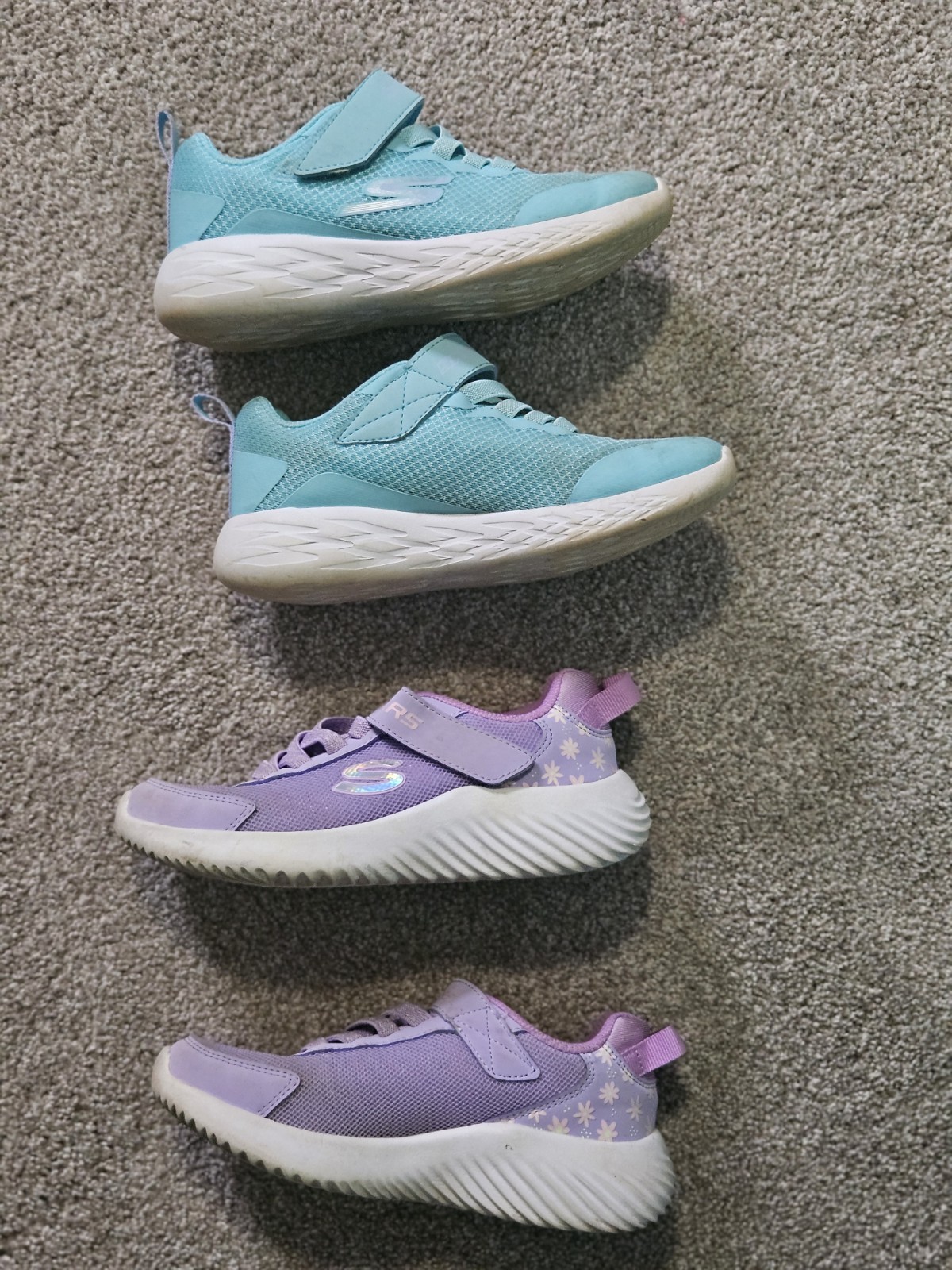 This lot includes two pairs of Skechers shoes in size 12 for girls. The athletic slip-on style is perfect for all seasons, with a multicolor design that adds a fun pop to any outfit. These shoes are easy to put on and comfortable for active kids, making them a practical and stylish choice for young girls on the go.