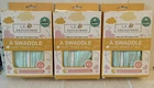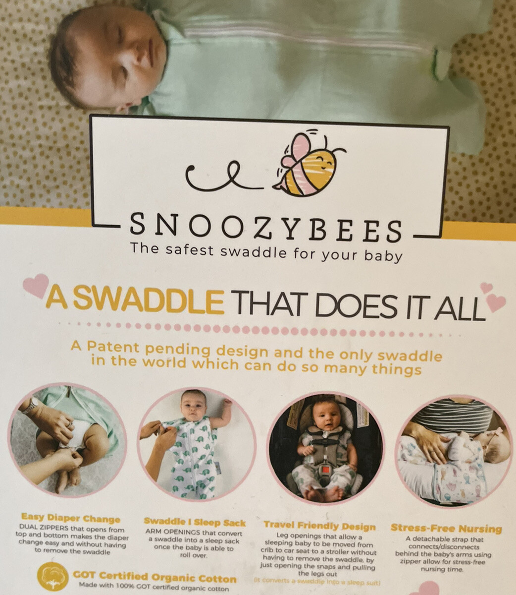 Baby Swaddles. Says 0-3 months. Says Snoozybees. Comes with the three shown. We had 4 but only opened and used one. I believe they were from Walmart. The three in the listing have not been used but will need to be washed prior to use. They are a little dusty from sitting in our home for some time. One is more dustier than the other two (it was the one on top where they were stored along with a lot of other baby items she got - many others of which went unused also that I will be listing soon). Bought for my granddaughter but she did not like swaddles so these just got stored with other baby items we had purchased before she was born. Box or packaging, if any, may have wear and tear or stickers - see pictures. Please view all pictures from many various angles carefully and ask questions as needed - prior to purchasing. Thank you.