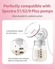 Breast Pump Parts Compatible with Spectra S1/S2/9 Plus, Not Original Accessories, Full Set Replacements Include 24mm Flanges, Valves, Backflow Protectors (Duckbills Included), Tubings and Bottles Interchangeable with Spectra Replacement Pump Parts : The package contains 10 replacement spectra pump parts( Duckbill Valves , Backflow Protector, Tubings and Bottles ).Compatible with Spectra S1, Spectra S2, Spectra 9 Plus.Note:Not Original Spectra pump parts Durable and Long-lasting : specially customized duckbill valves with sturdy base and an extra handing area.It can be easily disassembled in 2 ways and reduces pulling on the top area.So our part is not easy to deform and the tip is less likely to have big cracks Same Efficiency as OEM Parts : duckbill valves are compatible with Spectra Flange. backflow protector,membranes,tubing are also compatible with Spectra backflow protector and tubes.Same sunction power , high sealing design,long enough tubing make the milk will not enter the tubing, so it is less prone to loosening and leaking Premium Quality and Safety : It is made of food-grade silicone and is BPA free,skin-friendly.Safe for mom and baby.Rugged and durable design make them more tear-resistant.Note:they are need to be replaced regularly to keep your breast pump to have more efficient pumping Improve Mum's Pumping Experience : All replacement pump parts can be easily removed for cleaning(for example: through water steam, boiling water),be carried out and stored